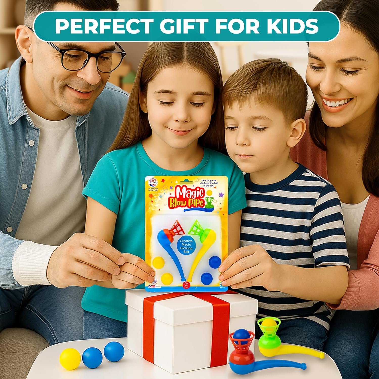 - Magic blow pipe floating ball game for all ages.